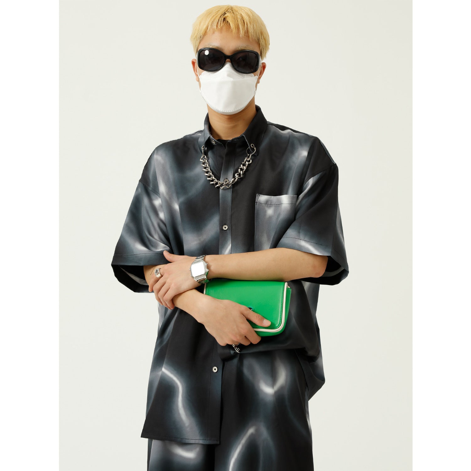 Handsome Casual Suit Men's Tie-dye Chain Design Shirt