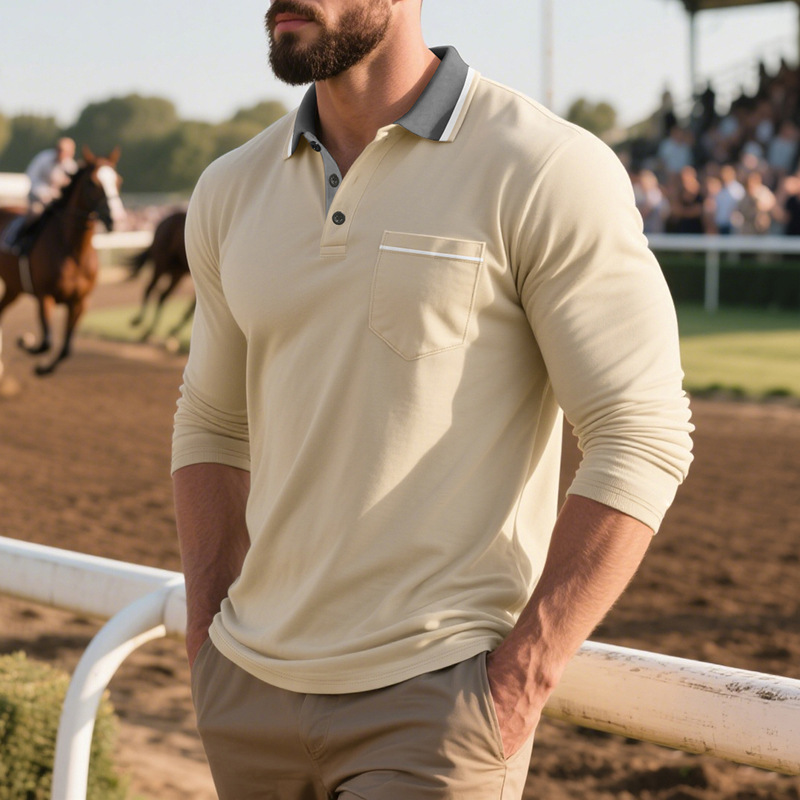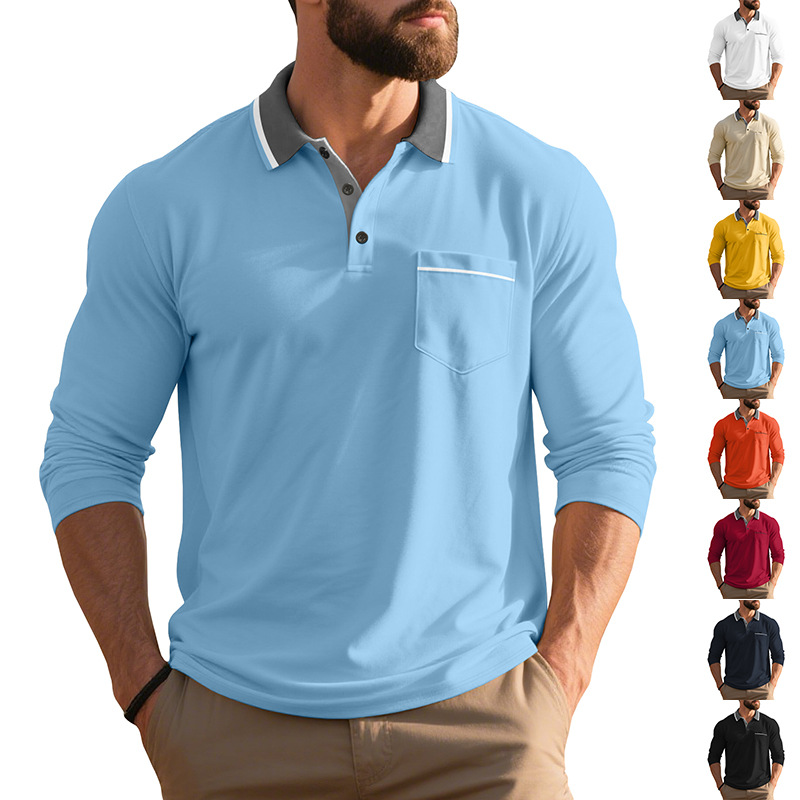• Spring And Autumn American Long-sleeved Men's Polo Shirt