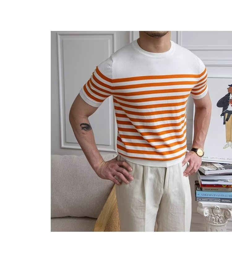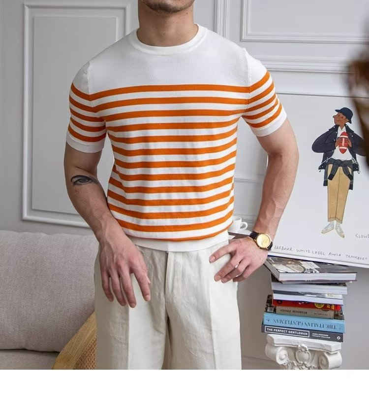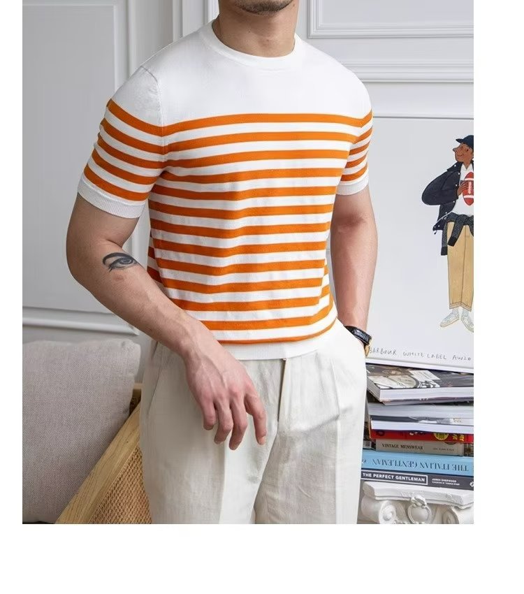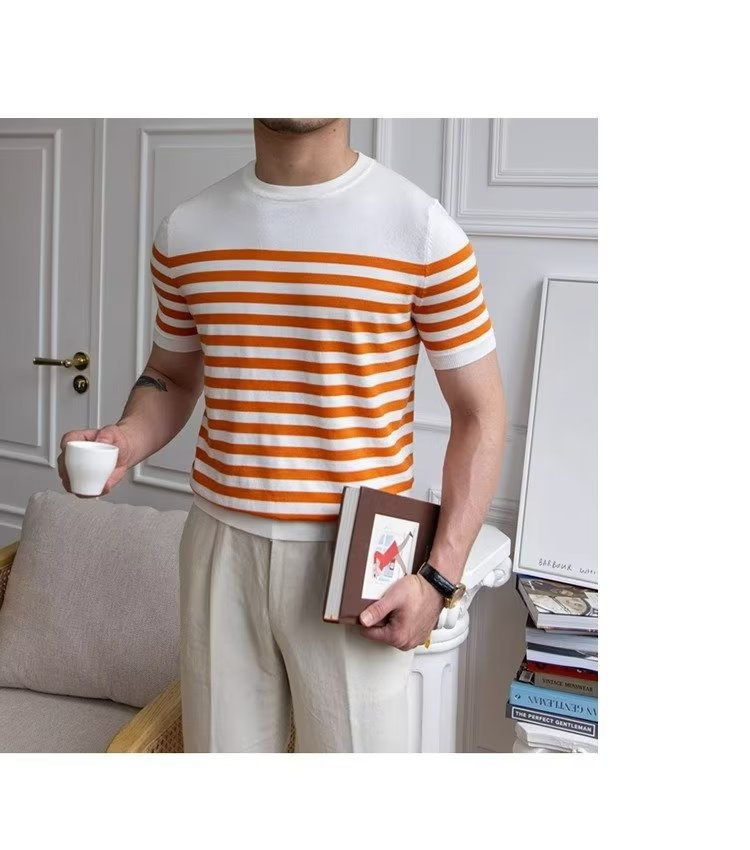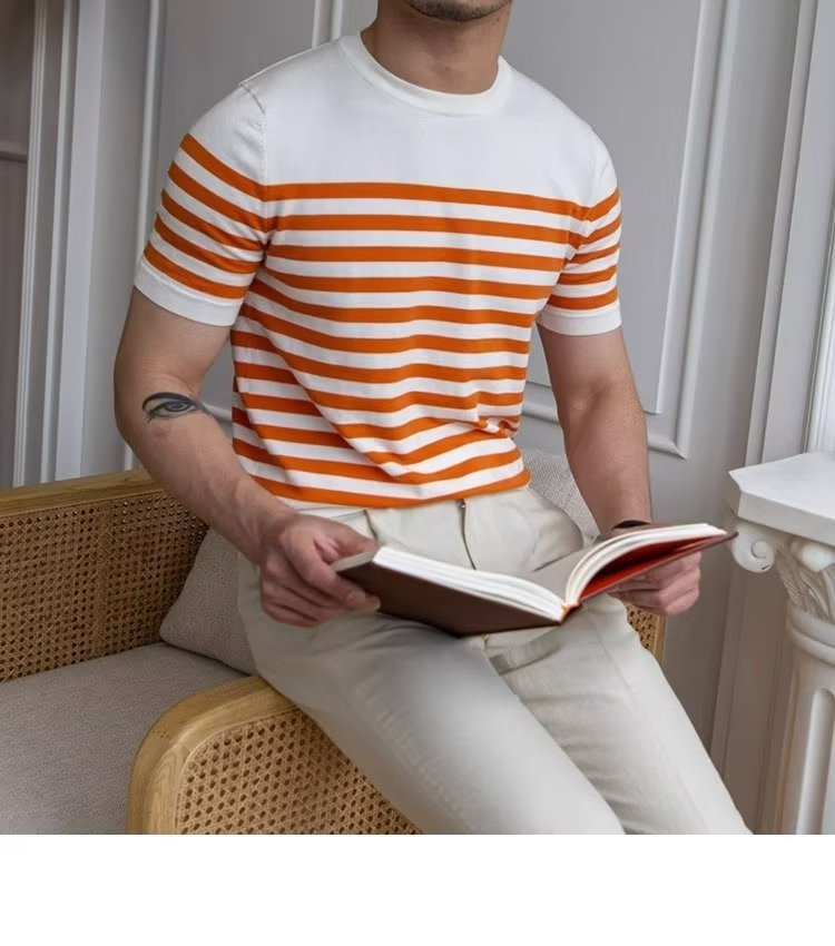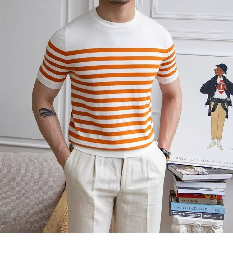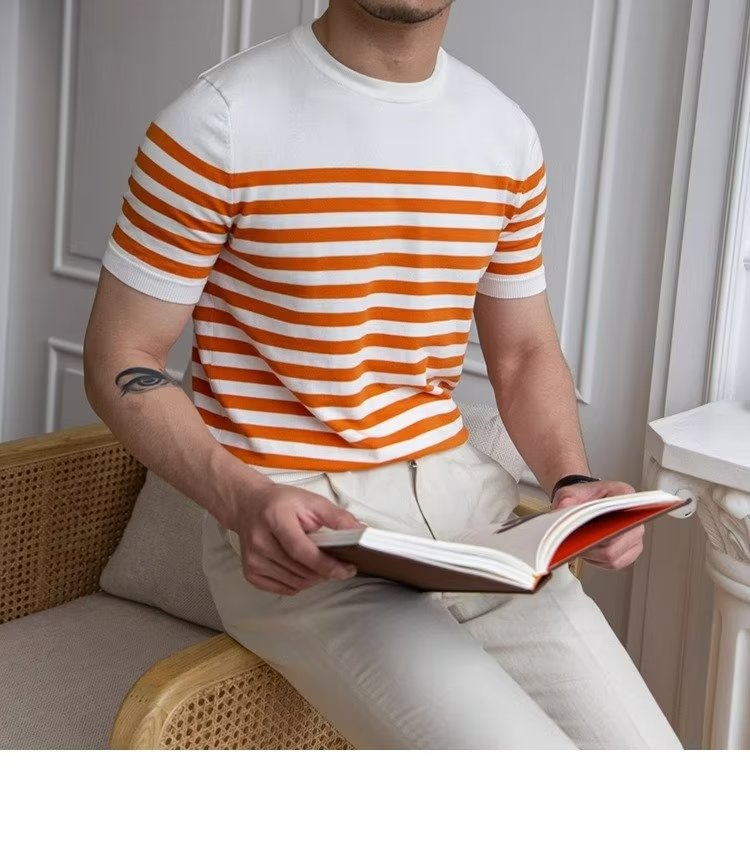 • Trendy All-matching Striped T-shirt Men's Short Sleeve