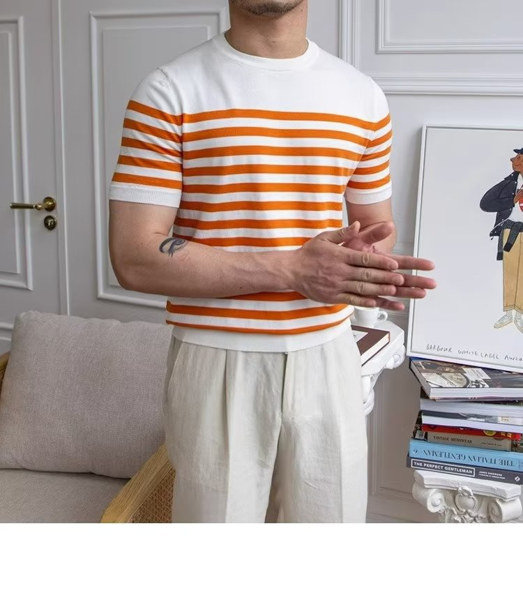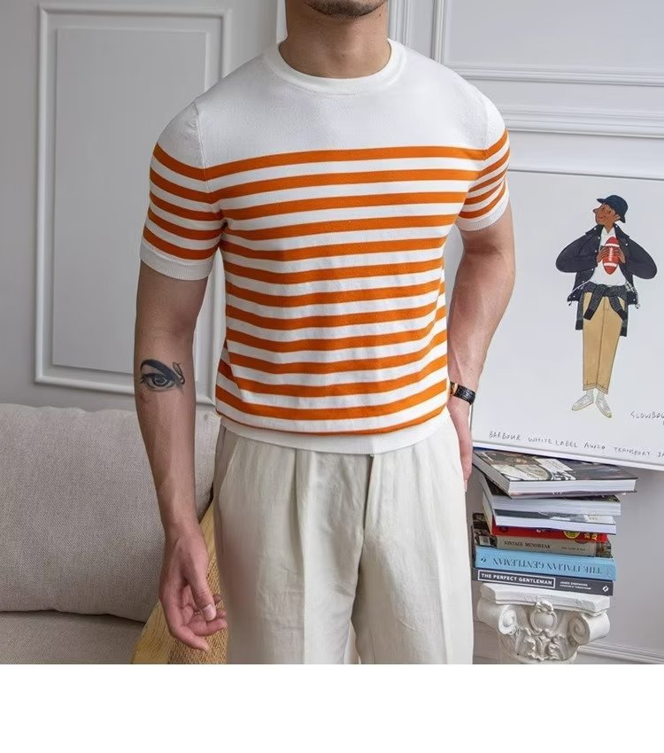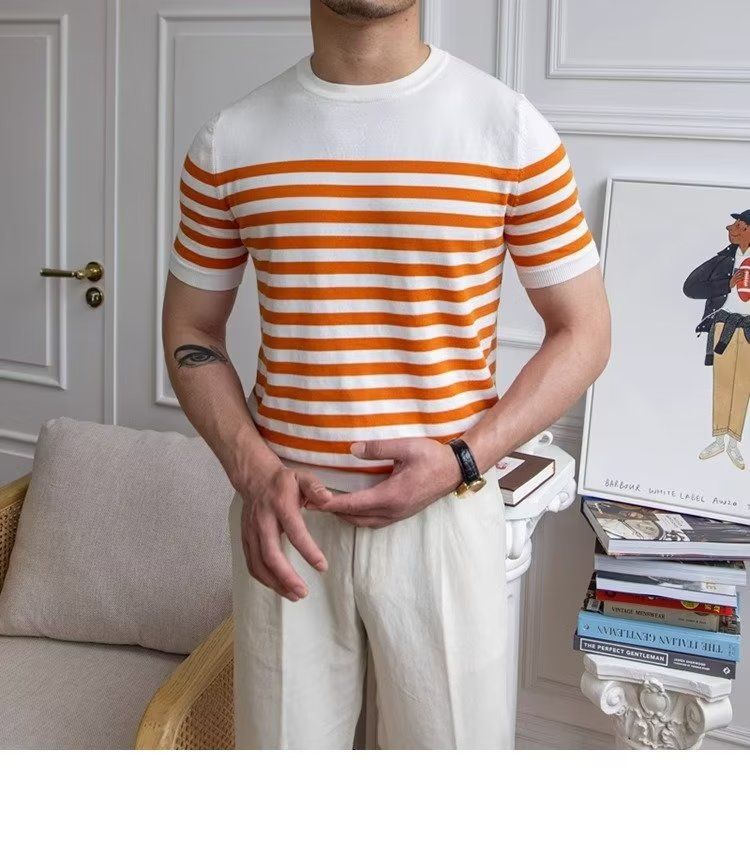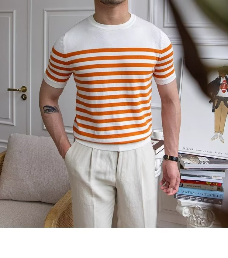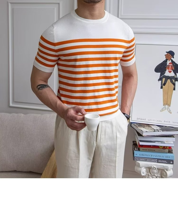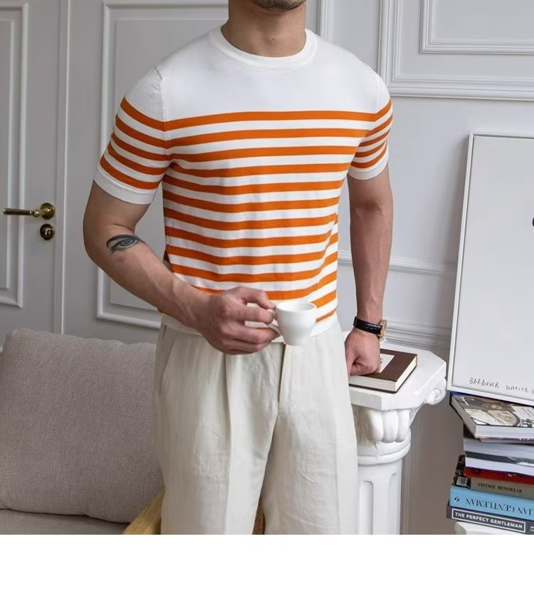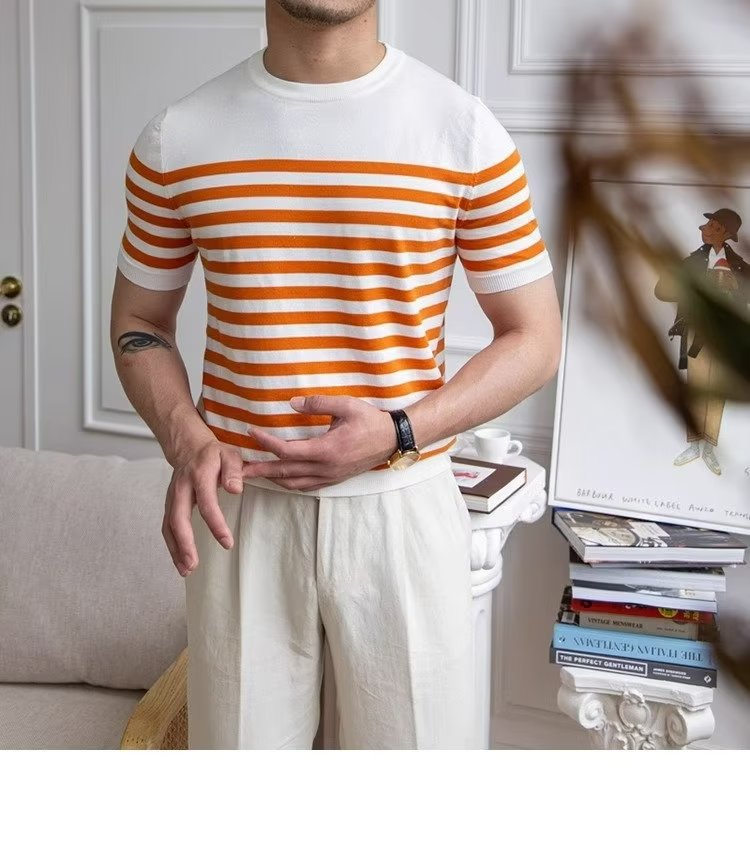 • Trendy All-matching Striped T-shirt Men's Short Sleeve
