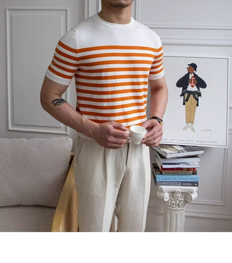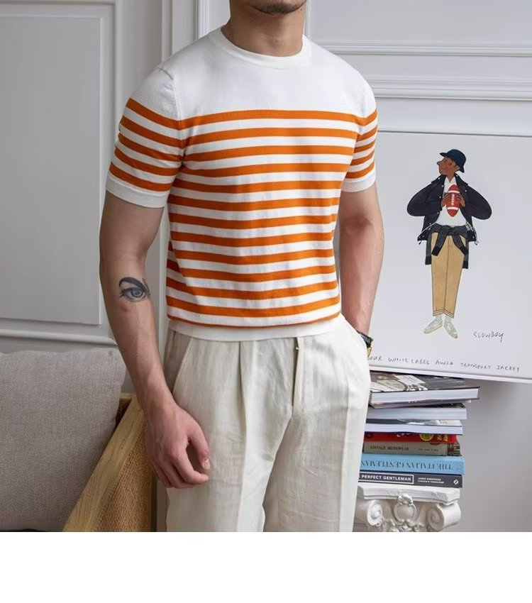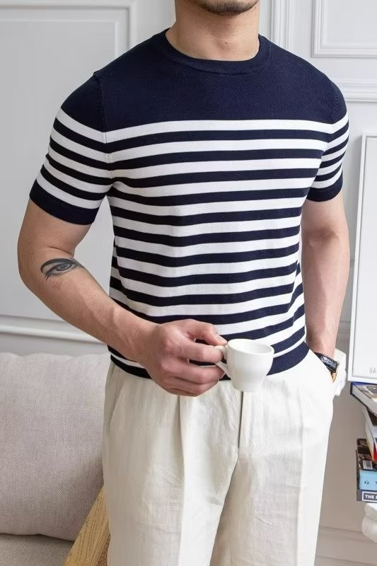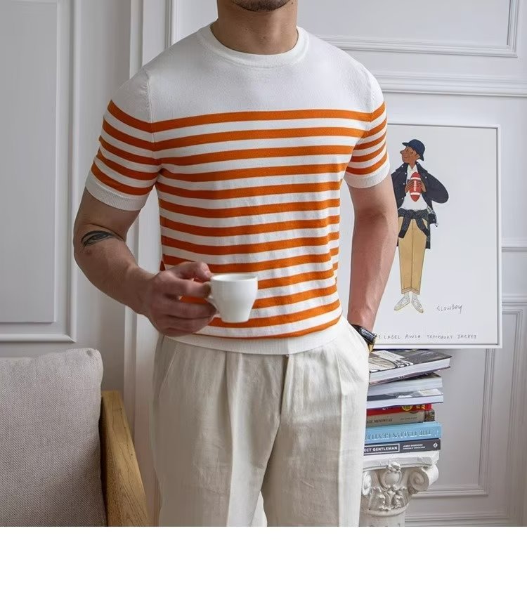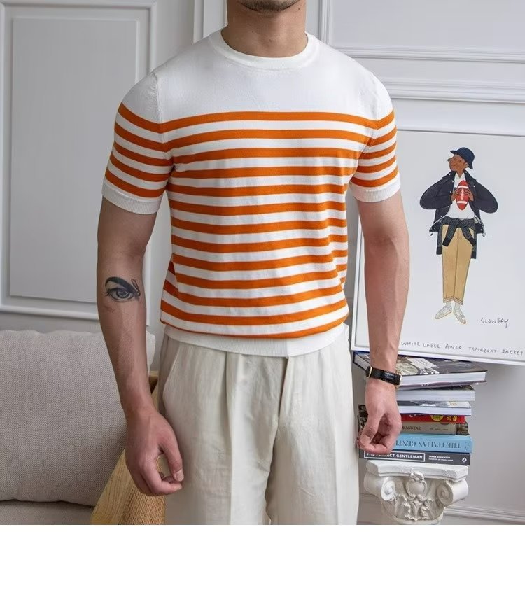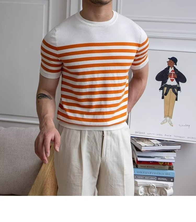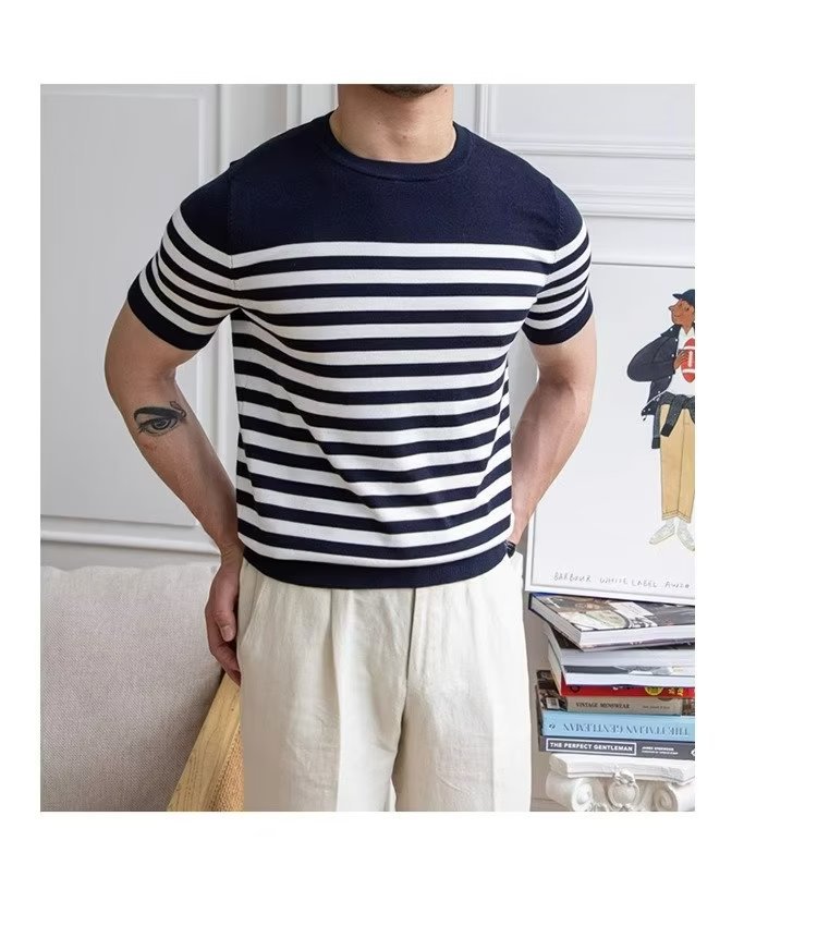 • Trendy All-matching Striped T-shirt Men's Short Sleeve